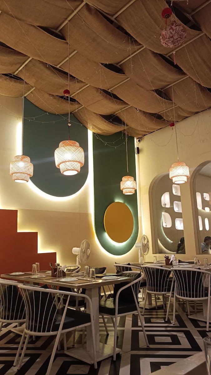 Visited this place tonight — and honestly, it left a pretty good impression overall. The ambience, colour palette, and overall vibe are really well done — warm, cozy, and aesthetically pleasing. The lighting design and decor create a calm and elegant mood that makes it a nice spot to unwind. However, the family section could use a little improvement — there was a slight unpleasant smell and a few mosquitos around, which disturbed the otherwise nice atmosphere. Coming to the food, it was good and satisfying, no complaints there. The service was a bit on the slower side, but considering it was a busy hour, it’s quite understandable. Overall, a lovely place to spend time — especially if you appreciate good ambience and tasteful interiors. A few small fixes and it could easily become a top choice for casual dining.